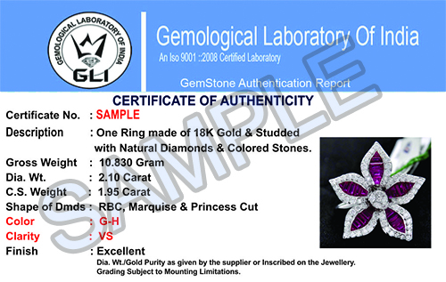 Gli Lab Jewelry certificate is used to document jewelry pieces and identify the characteristics of the precious stones featured in each piece.
